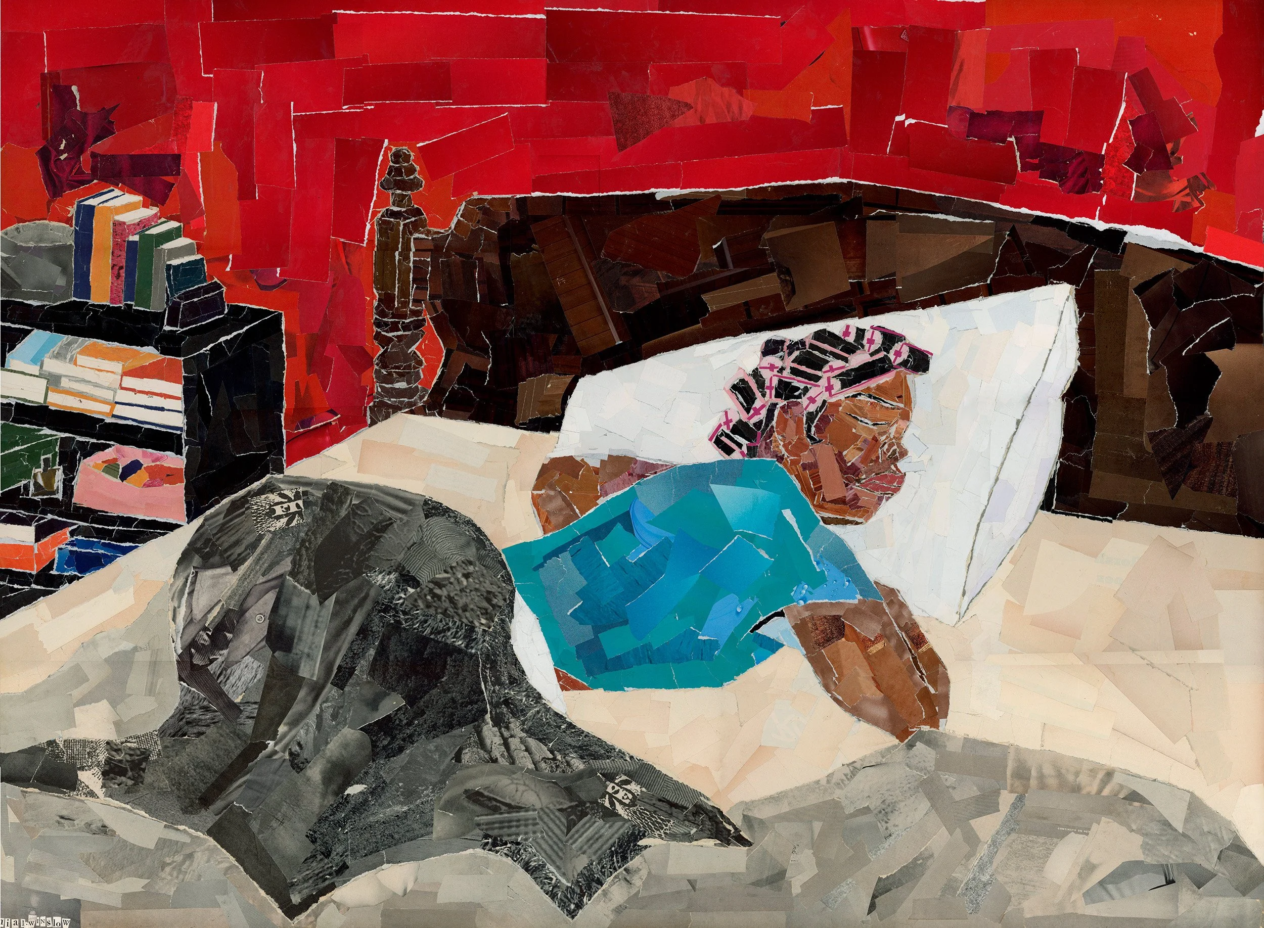 Paper collage on birch wood panel - made with several pieces of vintage paper from magazines circa 1940 - 1960